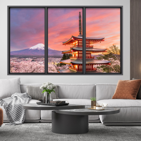 Adesivo Murale - Illusione ottica - Finestra - Monte Fuji Giappone