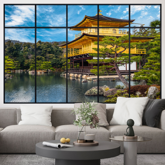 Adesivo Murale - Illusione ottica - Finestra - Tempio Giapponese