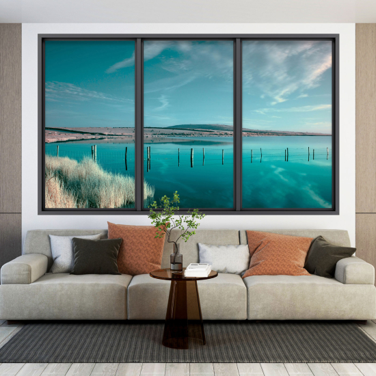www.lumalea.it > Adesivi > Adesivi Murali Effetto 3D > Adesivi Murali Finestre in Alluminio > Adesivo Murale - Illusione ottica - Finestra - Vista Mare
