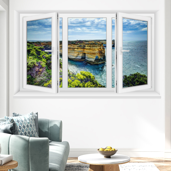 Adesivo Murale - Illusione ottica - Finestra - Vista mare