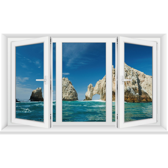 Adesivo Murale - Illusione ottica - Finestra - Vista mare Messico