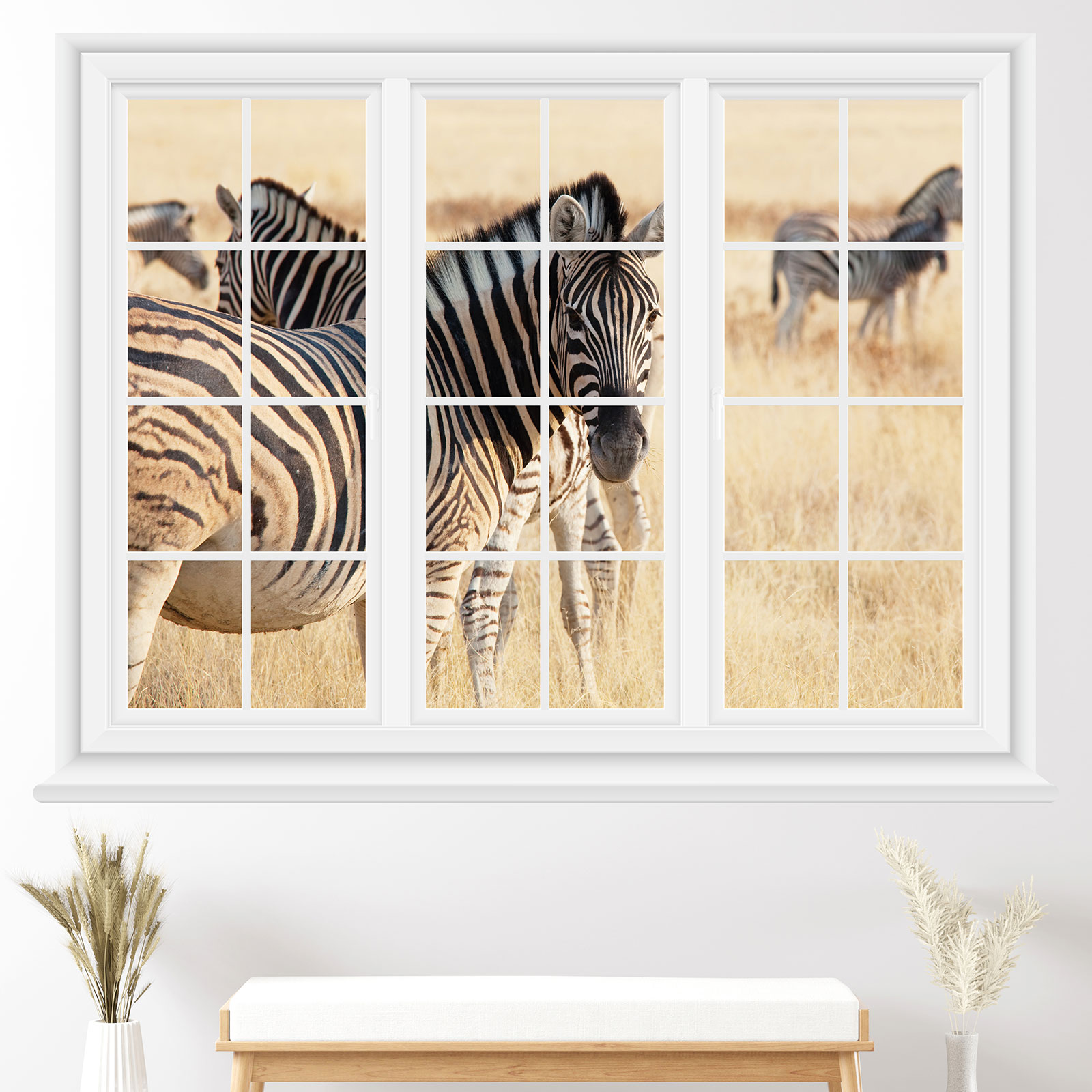 Adesivo Murale - Illusione ottica - Finestra - Zebre