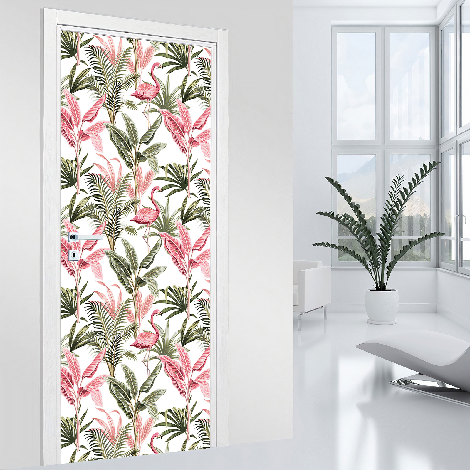 www.lumalea.it > Adesivi > Adesivi per Porte > Adesivi Porte con Motivi > Adesivo per porta - Fenicotteri rosa