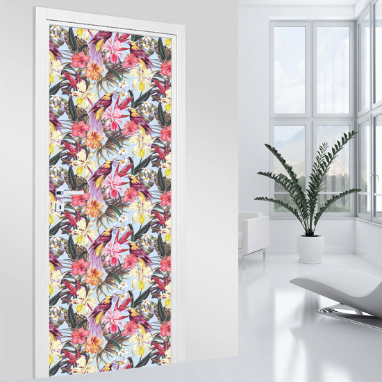 Adesivo per porta - Uccelli fiori