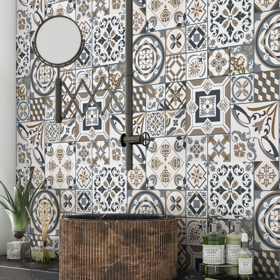 Alzatina adesiva per bagno - Motivo piastrelle di cemento