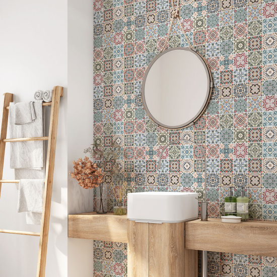 Alzatina adesiva per bagno - Motivo piastrelle di cemento