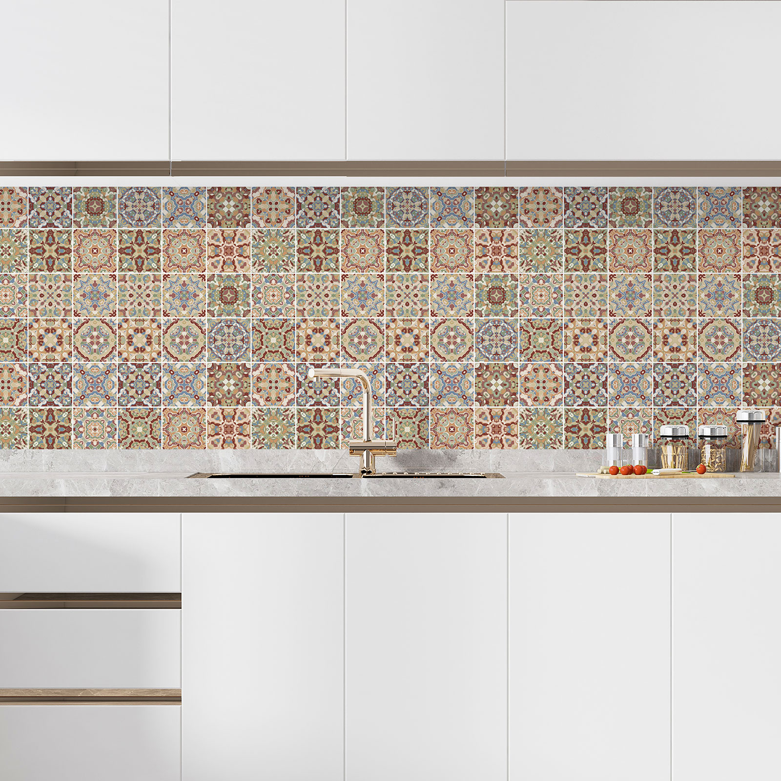 Alzatina adesiva per cucina - Effetto piastrelle di cemento