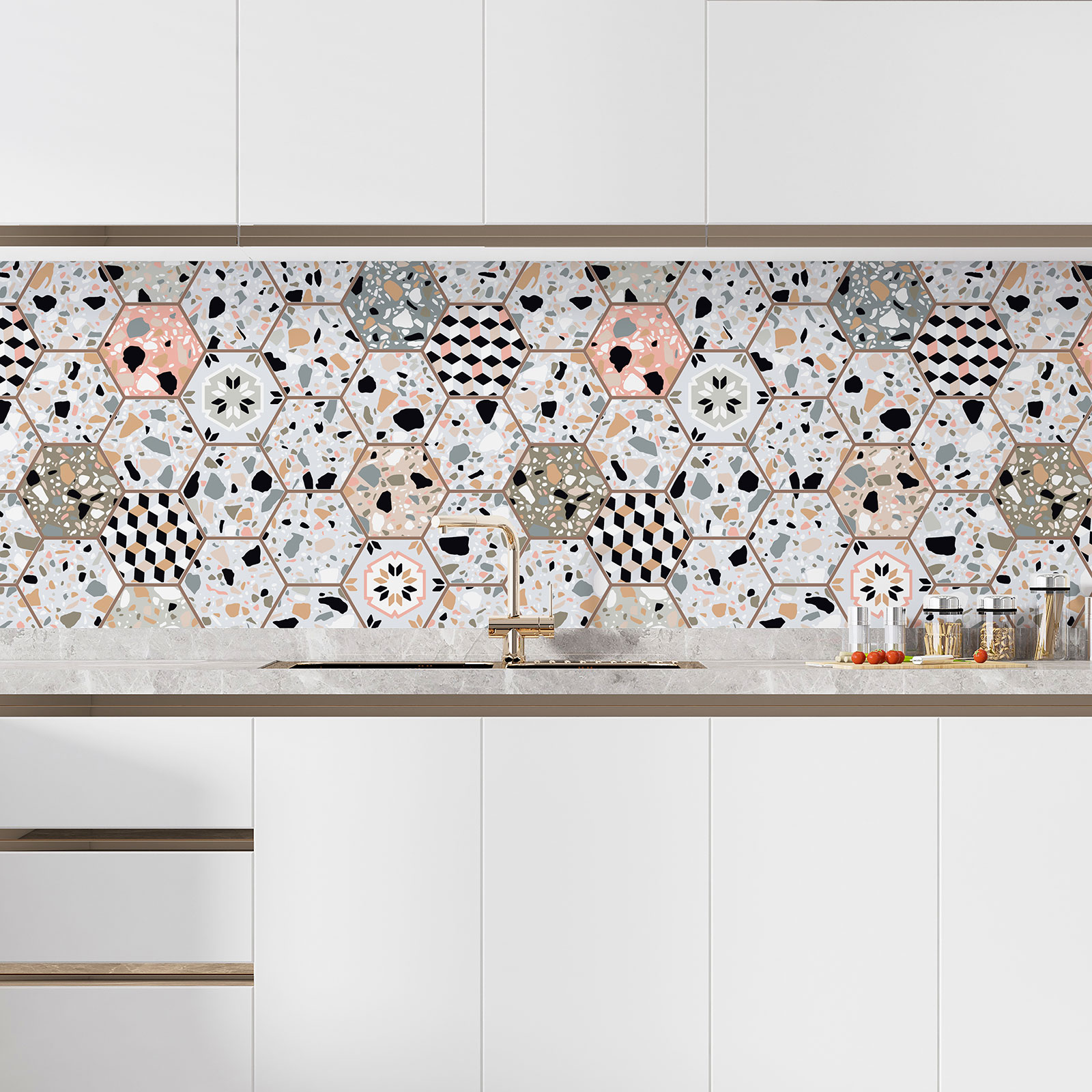 La cucina è il cuore della tua casa, uno spazio dove prepari deliziosi pasti e condividi momenti preziosi in famiglia. Per dargli un Aspetto moderno ed elegante senza i fastidi di una costosa ristrutturazione, la nostra schiena adesiva è la soluzione ideale. Scopri come puoi rinfrescare la tua cucina istantaneamente con la nostra collezione di schiene creative.