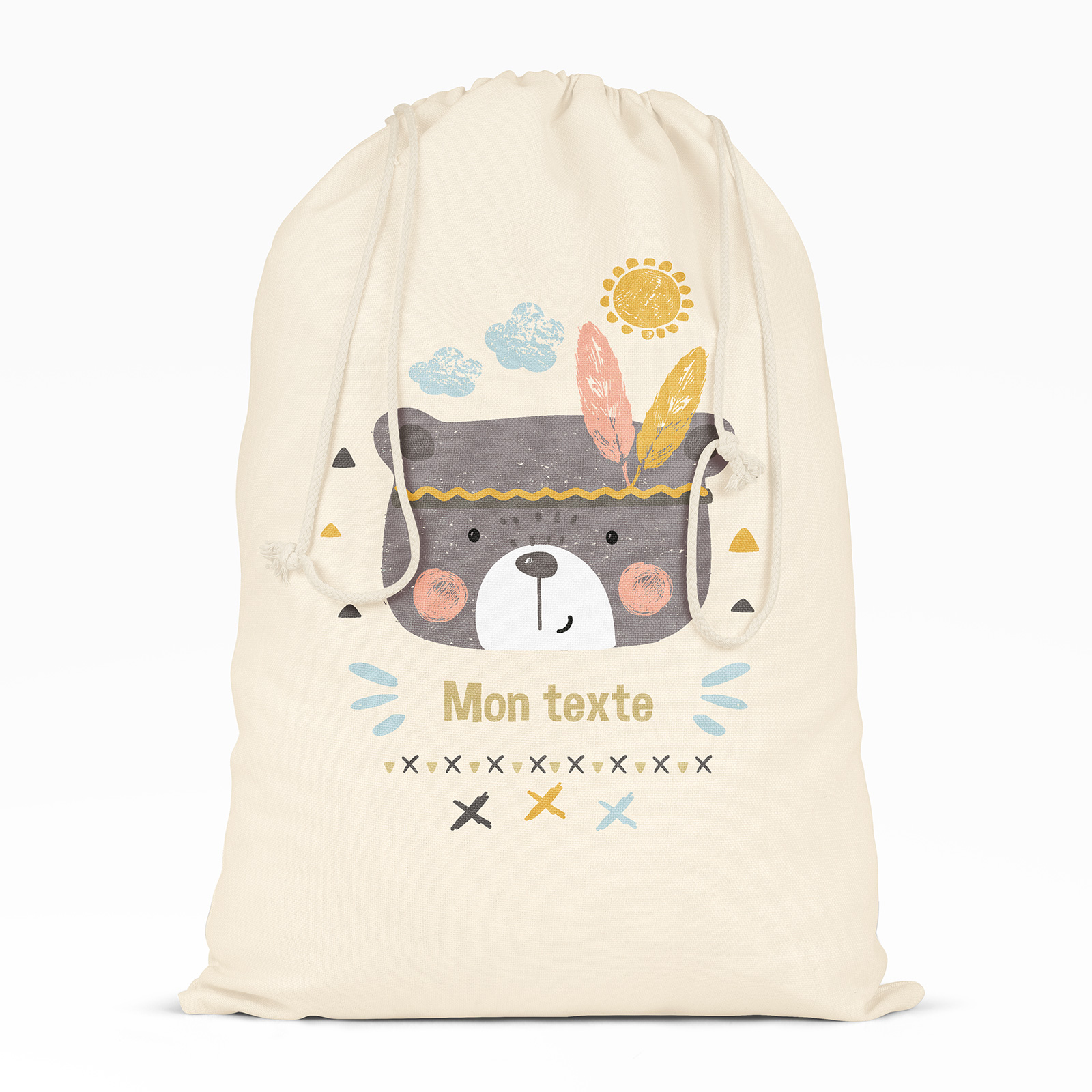 Una graziosa borsa in tela di cotone con coulisse per trasportare gli oggetti personali del tuo bambino.