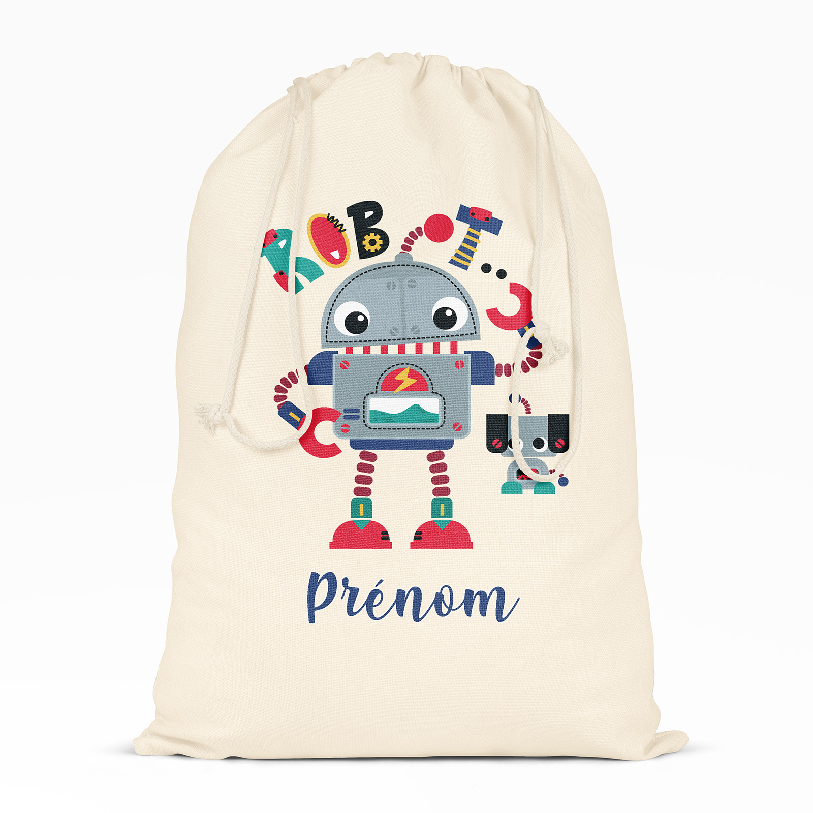 Una graziosa borsa in tela di cotone con coulisse per trasportare gli oggetti personali del tuo bambino.
