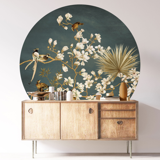 Carta da parati Cerchio / Rotondo - Fiori Uccelli