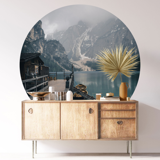 Carta da parati Cerchio / Rotondo - Montagne Lago