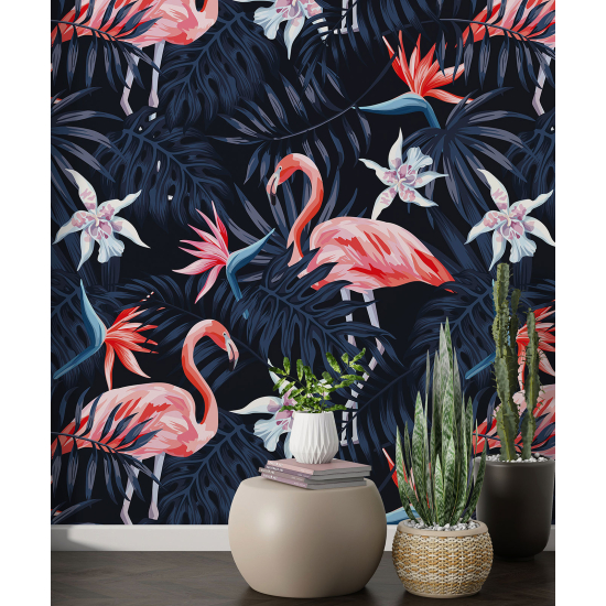 Carta da parati con motivi grandi - Fenicotteri rosa