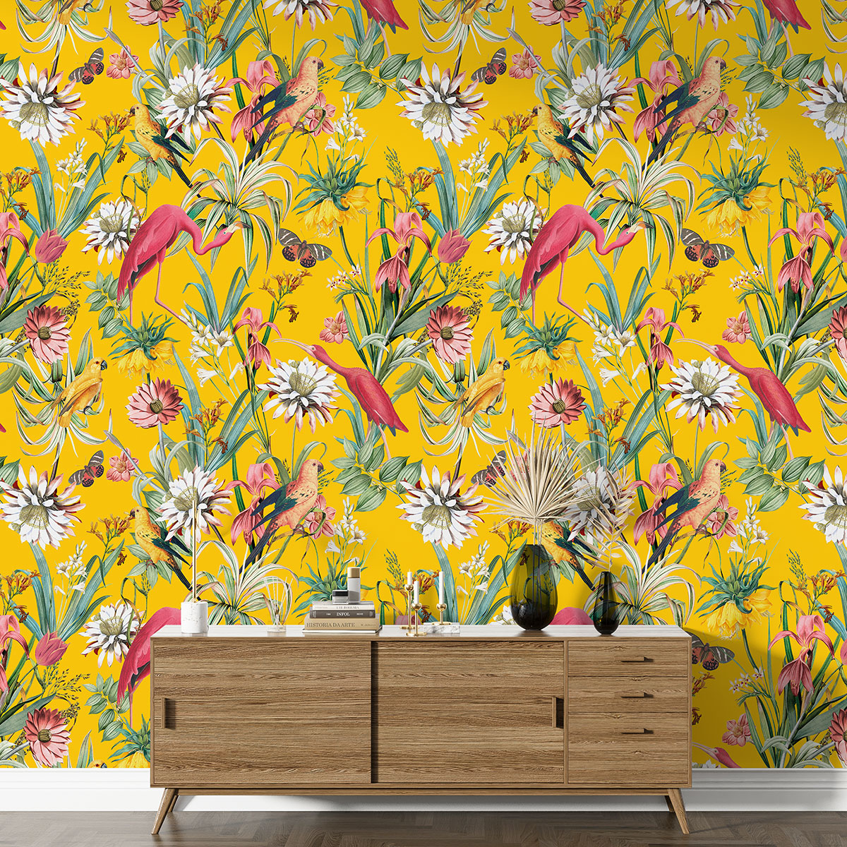 www.lumalea.it > Carte da parati > Carta da Parati a Pannelli Ripetitivi > Motivi di Taglia XL > Carta da parati con motivi grandi - Fiori Uccelli