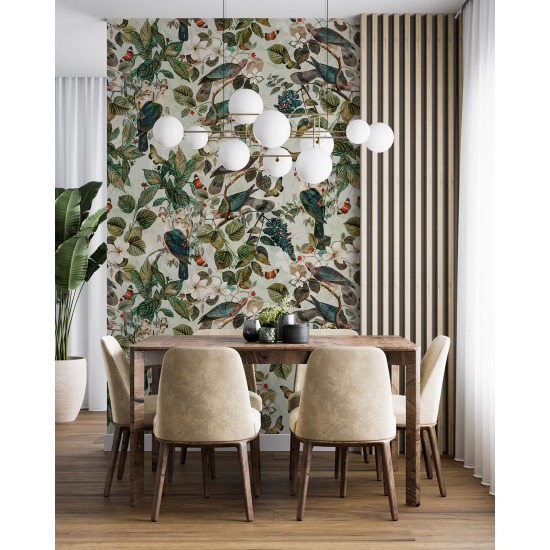 www.lumalea.it > Carte da parati > Carta da Parati a Pannelli Ripetitivi > Motivi di Taglia XL > Carta da parati con motivi grandi - Fiori Uccelli