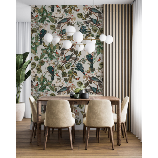 www.lumalea.it > Carte da parati > Carta da Parati a Pannelli Ripetitivi > Motivi di Taglia XL > Carta da parati con motivi grandi - Fiori Uccelli