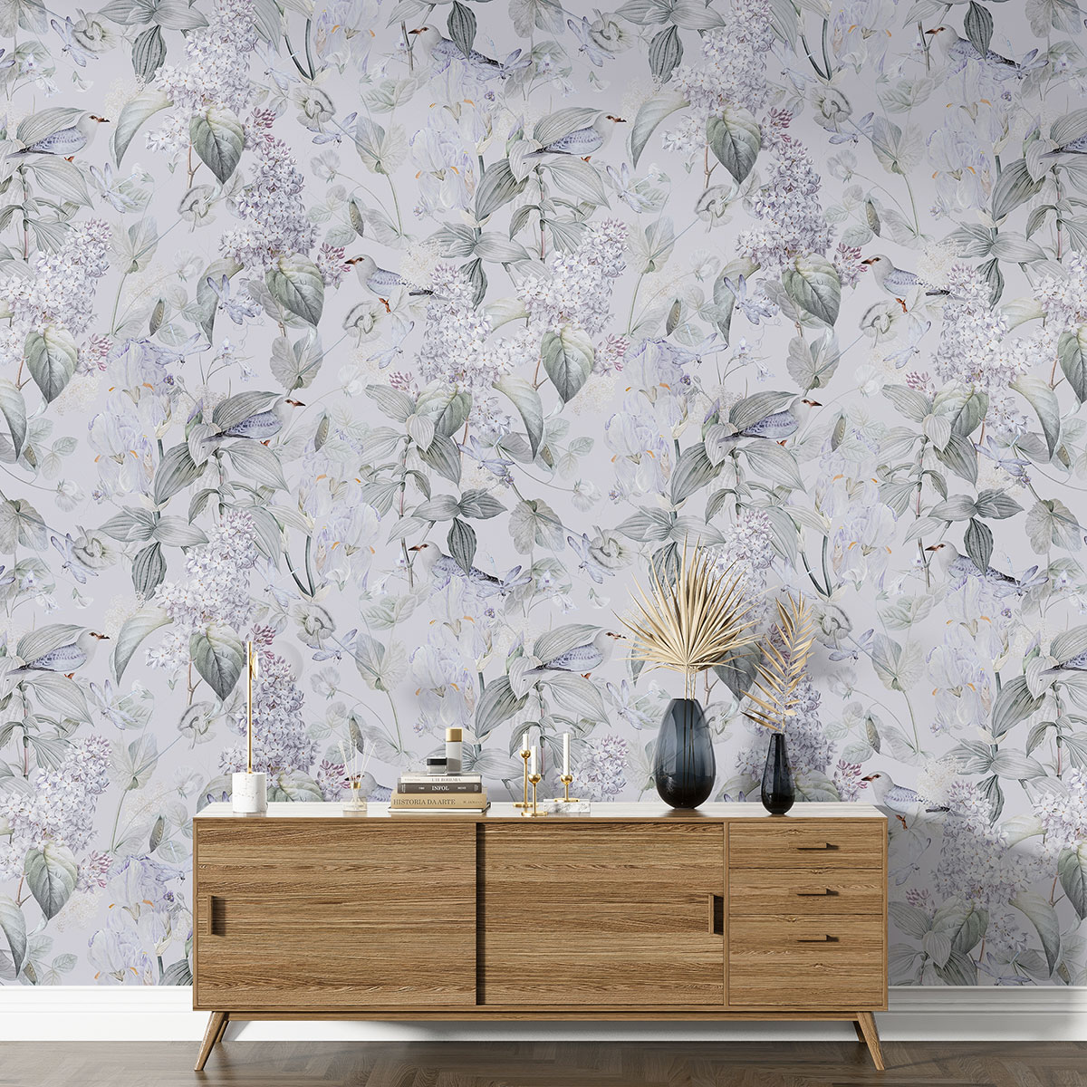 Carta da parati con motivi grandi - Fiori Uccelli