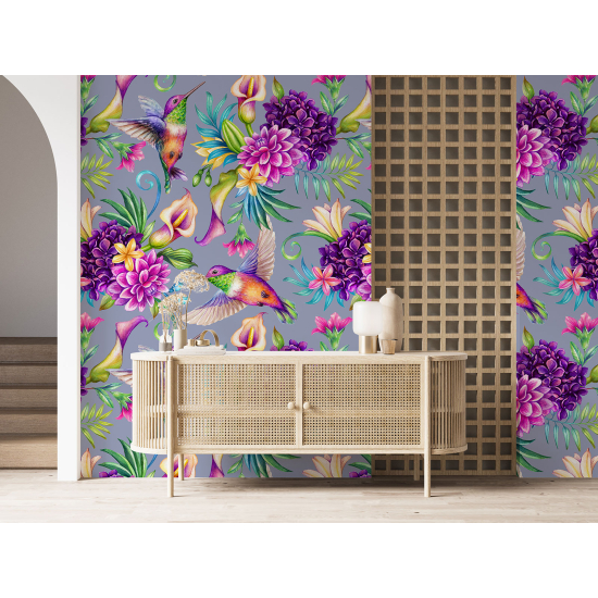 www.lumalea.it > Carte da parati > Carta da Parati a Pannelli Ripetitivi > Motivi di Taglia XL > Carta da parati con motivi grandi - Fiori Uccelli