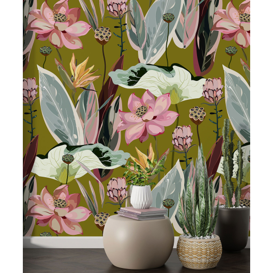 Carta da parati con motivi grandi - Motivo floreale