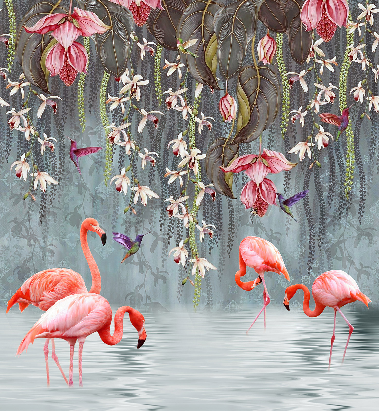 www.lumalea.it > Carte da parati > Carta da Parati Panoramica > Jungle > Carta da parati panoramica - Fenicotteri Rosa