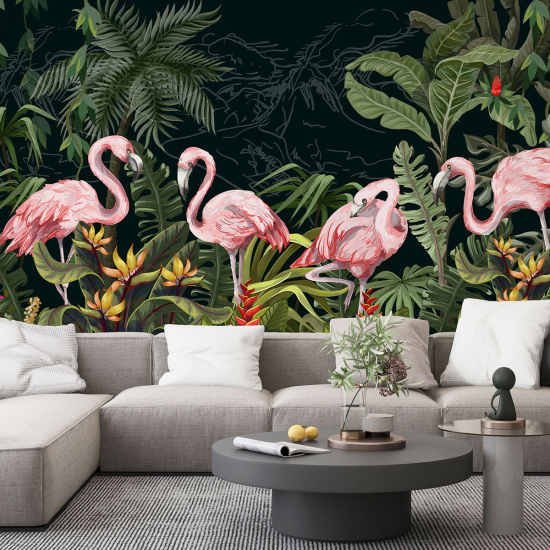 Carta da parati panoramica - Fenicotteri rosa Fiori