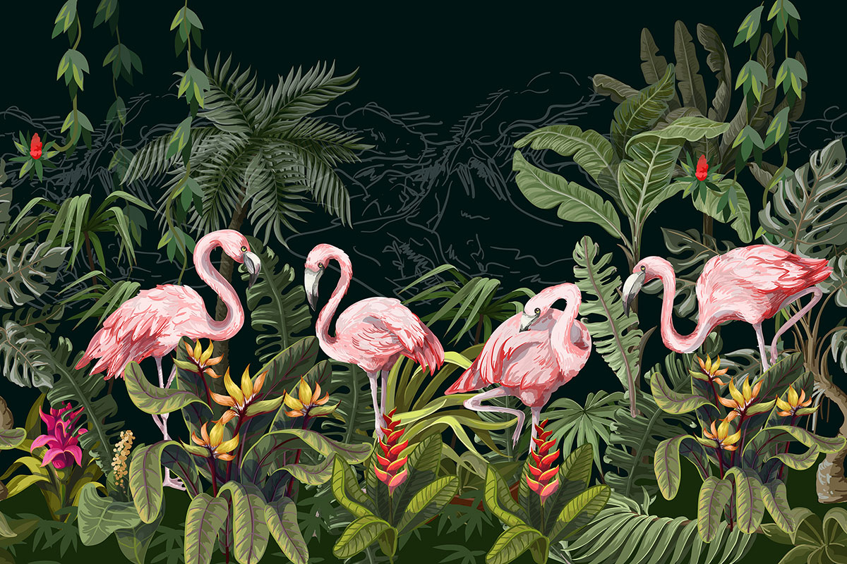 www.lumalea.it > Carte da parati > Carta da Parati Panoramica > Jungle > Carta da parati panoramica - Fenicotteri rosa Fiori