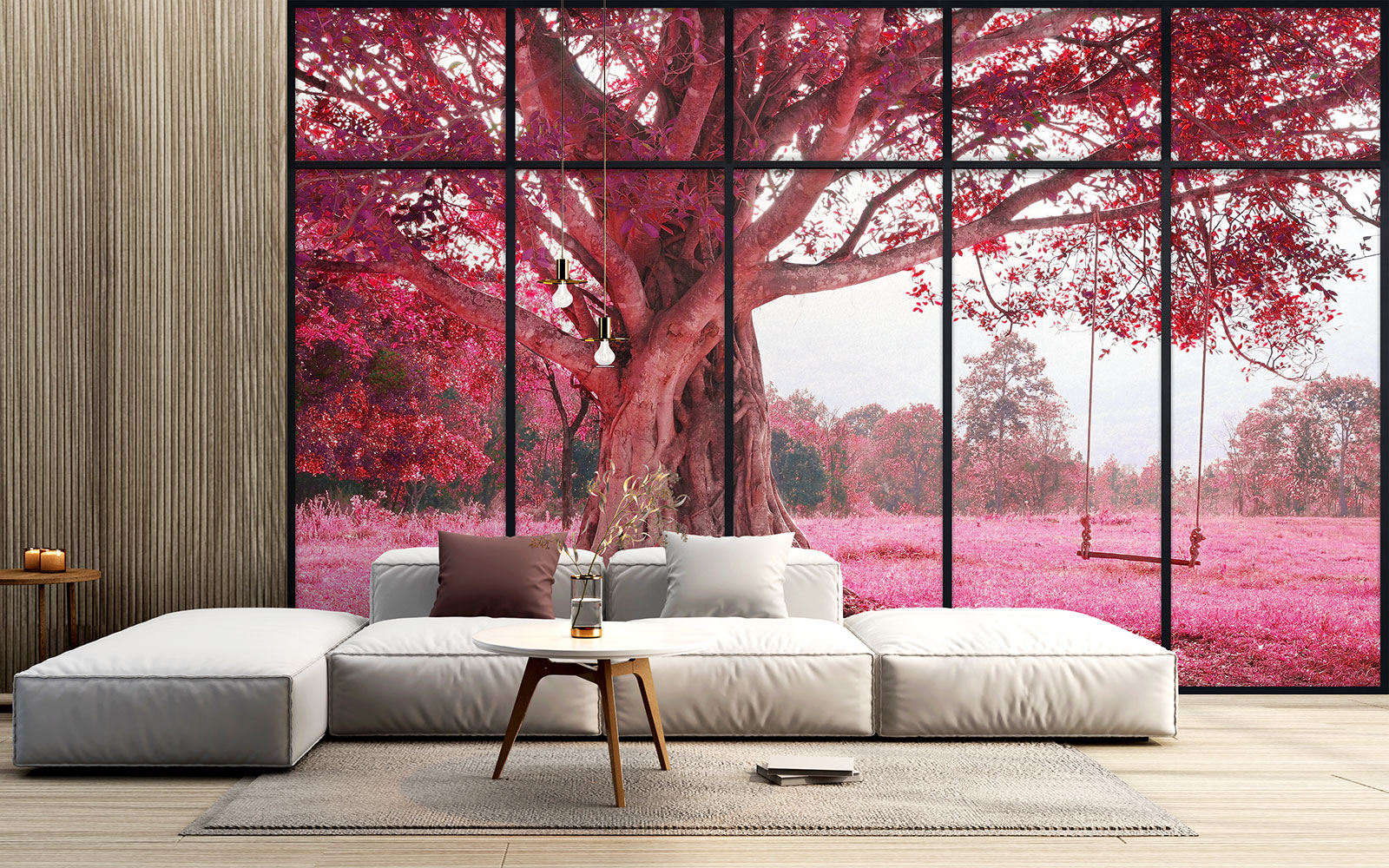 Carta da parati panoramica - Illusione ottica - Albero fiori rosa