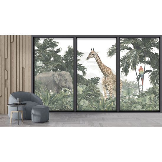 www.lumalea.it > Carte da parati > > > Carta da Parati Effetto 3D > Finestre panoramiche Effetto 3D > Carta da parati panoramica - Illusione ottica - Animali della giungla