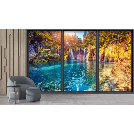 www.lumalea.it > Carte da parati > > > Carta da Parati Effetto 3D > Finestre panoramiche Effetto 3D > Carta da parati panoramica - Illusione ottica - Cascate