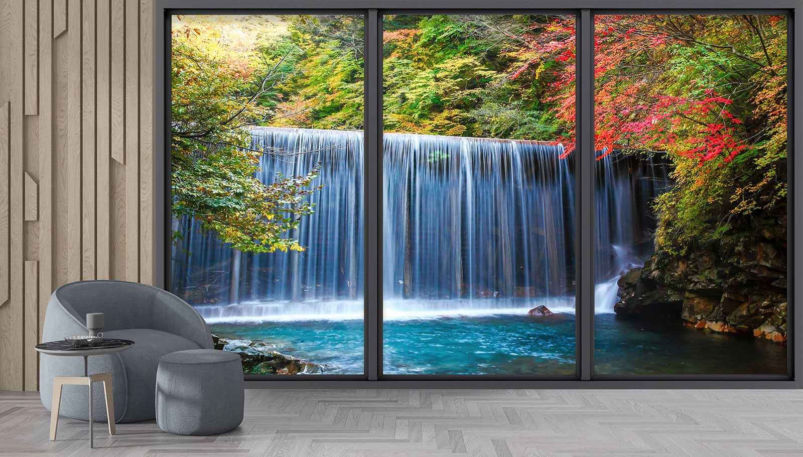www.lumalea.it > Carte da parati > > > Carta da Parati Effetto 3D > Finestre panoramiche Effetto 3D > Carta da parati panoramica - Illusione ottica - Cascate