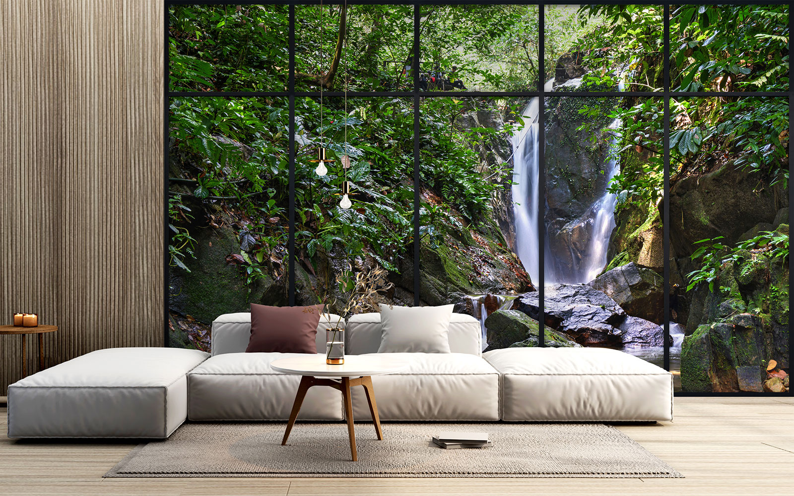 www.lumalea.it > Carte da parati > Carta da Parati Panoramica > Carta da Parati Effetto 3D > Vetrate Effetto 3D > Carta da parati panoramica - Illusione ottica - Cascate