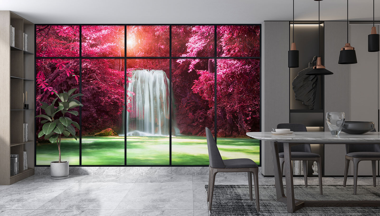 www.lumalea.it > Carte da parati > Carta da Parati Panoramica > Carta da Parati Effetto 3D > Vetrate Effetto 3D > Carta da parati panoramica - Illusione ottica - Cascate
