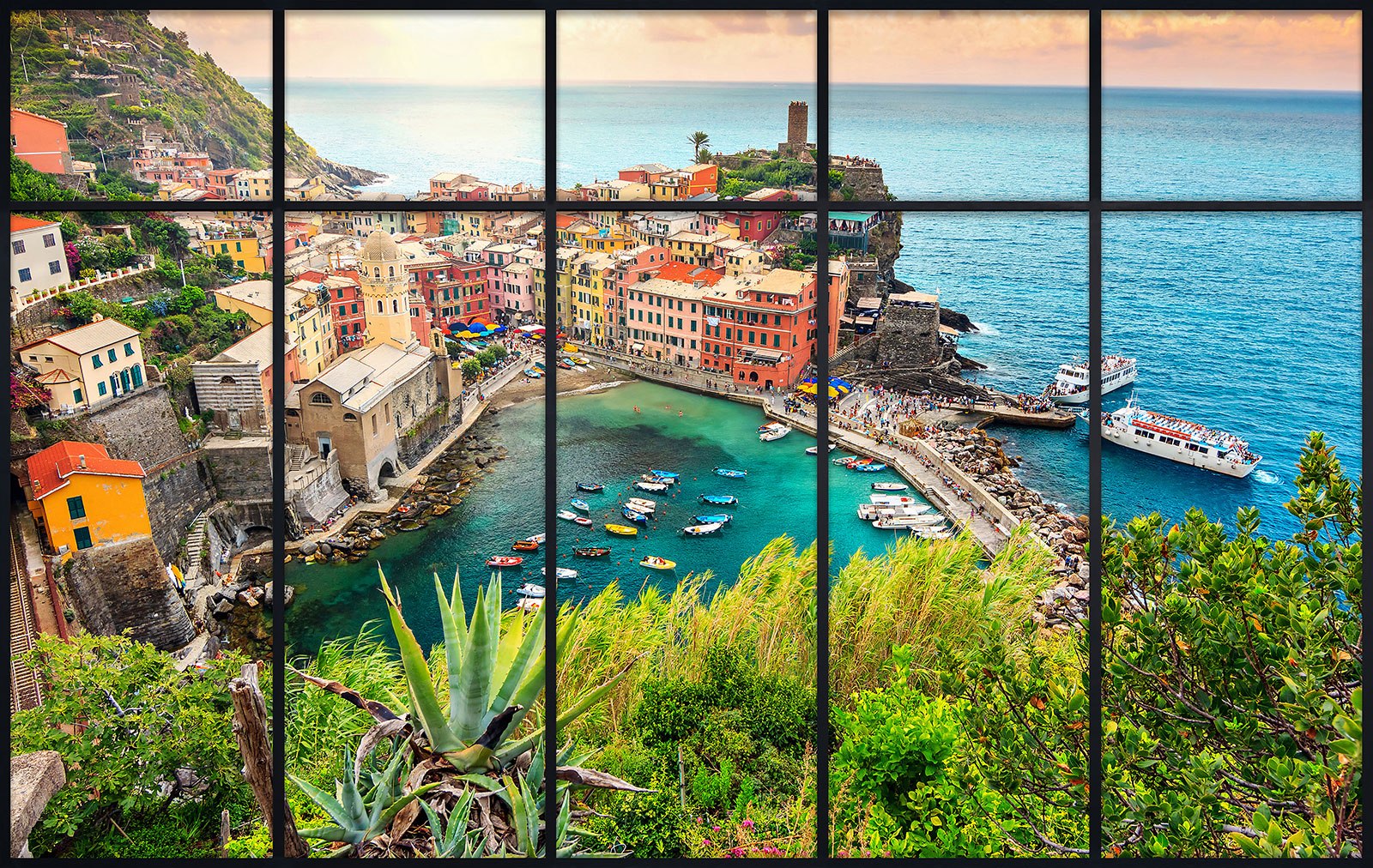 www.lumalea.it > Carte da parati > Carta da Parati Panoramica > Carta da Parati Effetto 3D > Vetrate Effetto 3D > Carta da parati panoramica - Illusione ottica - Cinque Terre
