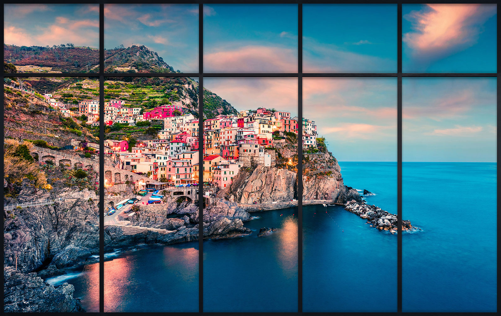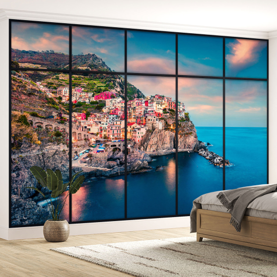 www.lumalea.it > Carte da parati > Carta da Parati Panoramica > Carta da Parati Effetto 3D > Vetrate Effetto 3D > Carta da parati panoramica - Illusione ottica - Cinque Terre