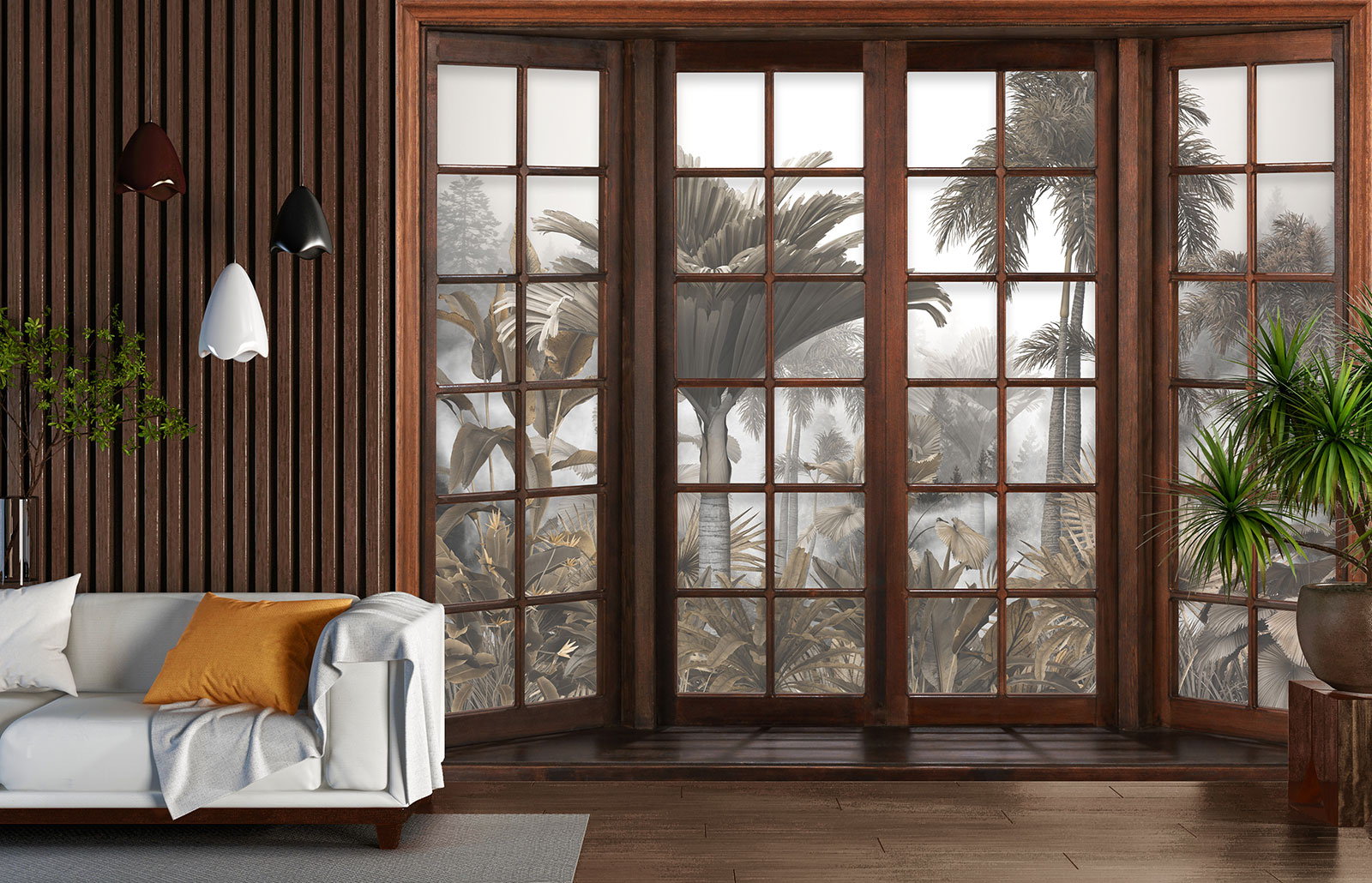 Carta da parati panoramica - Illusione ottica - Finestra in legno - Foresta Tropicale