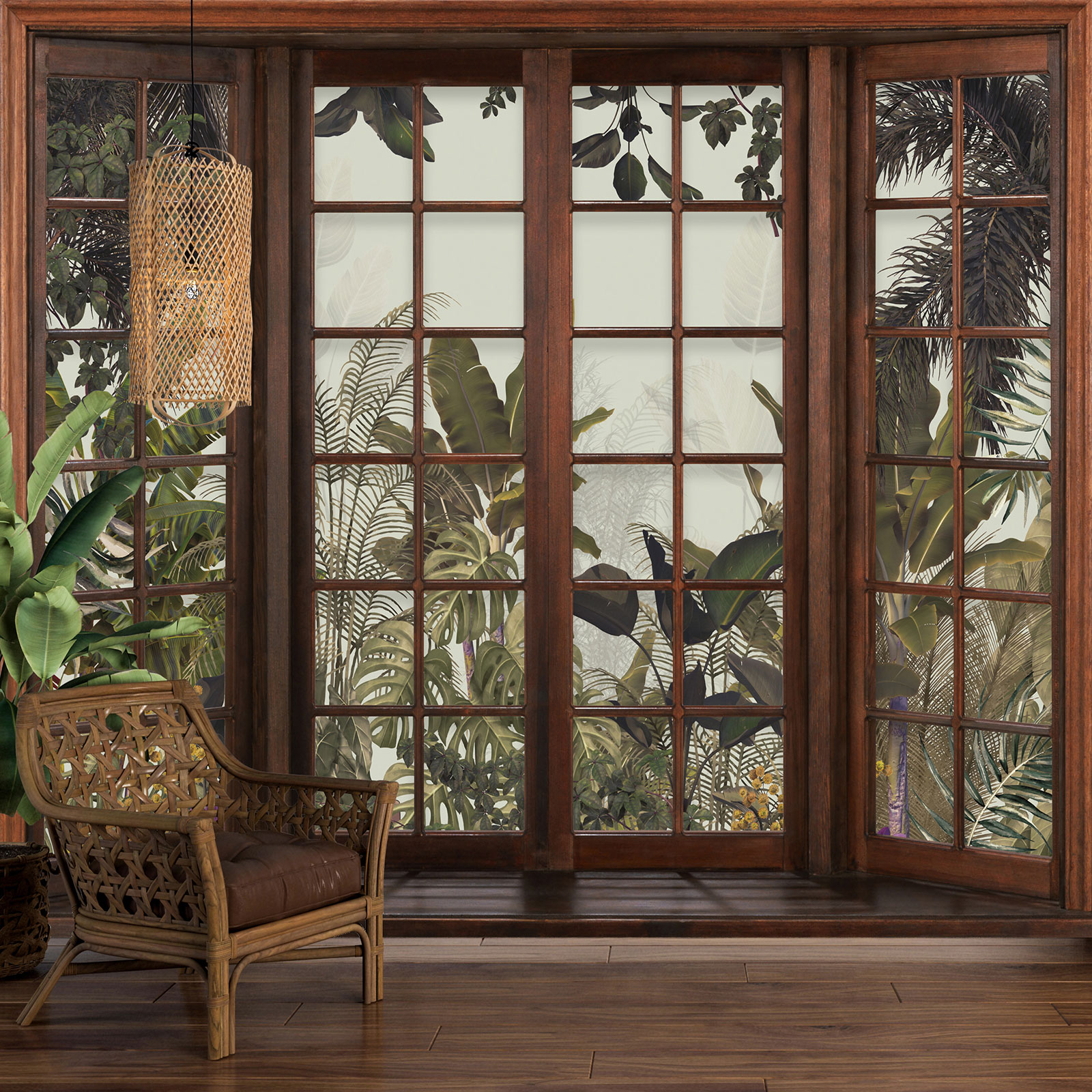 Carta da parati panoramica - Illusione ottica - Finestra in legno - Foresta Tropicale