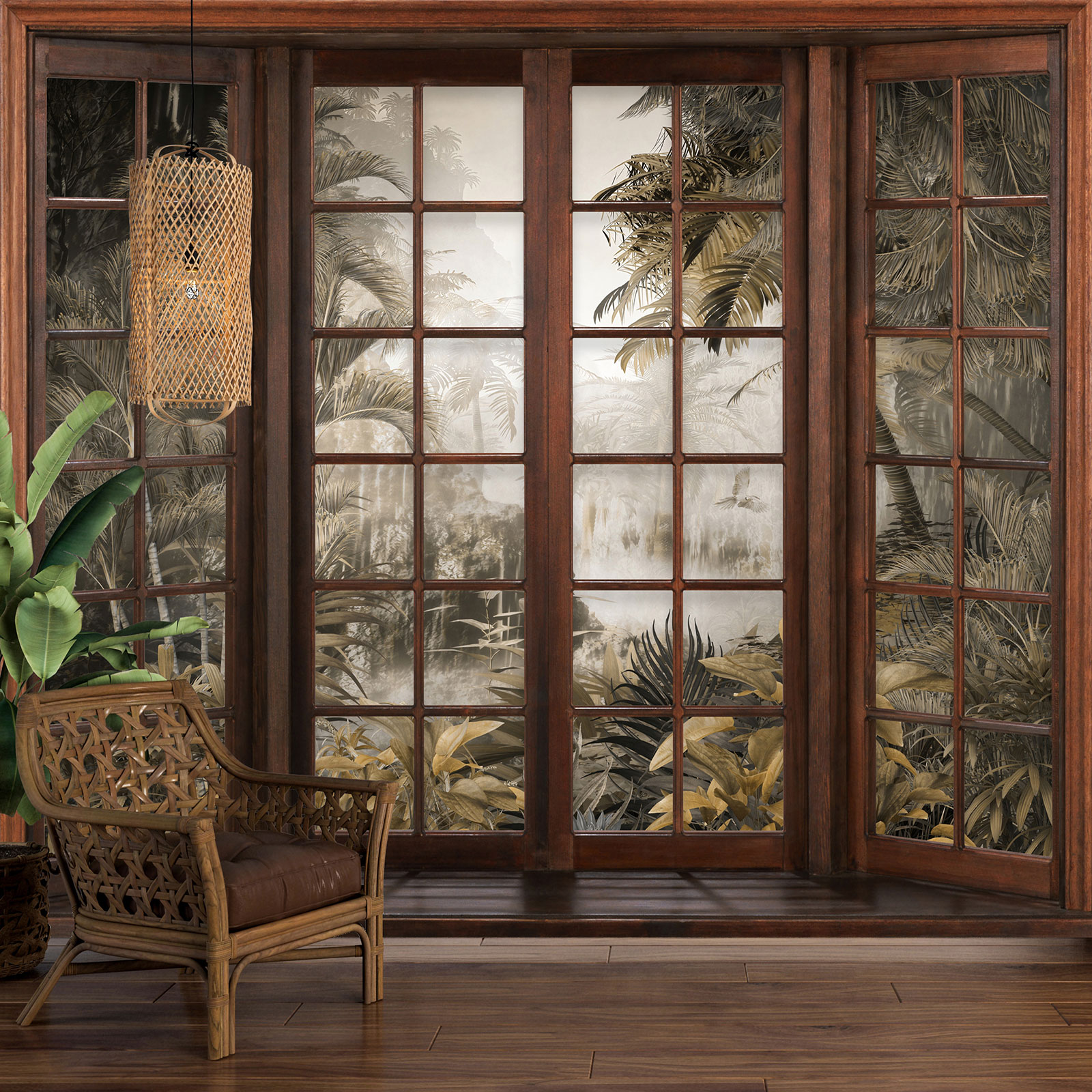 Carta da parati panoramica - Illusione ottica - Finestra in legno - Foresta Tropicale