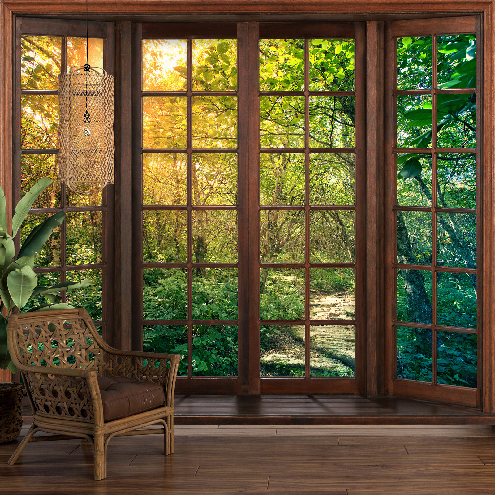 Carta da parati panoramica - Illusione ottica - Finestra in legno - Sentiero