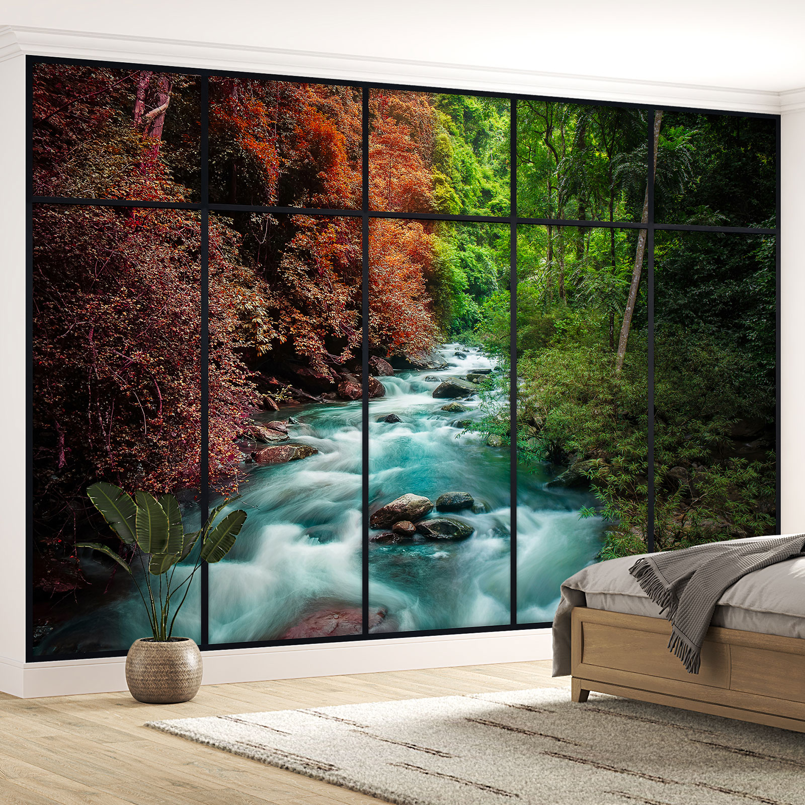 www.lumalea.it > Carte da parati > Carta da Parati Panoramica > Carta da Parati Effetto 3D > Vetrate Effetto 3D > Carta da parati panoramica - Illusione ottica - Fiume
