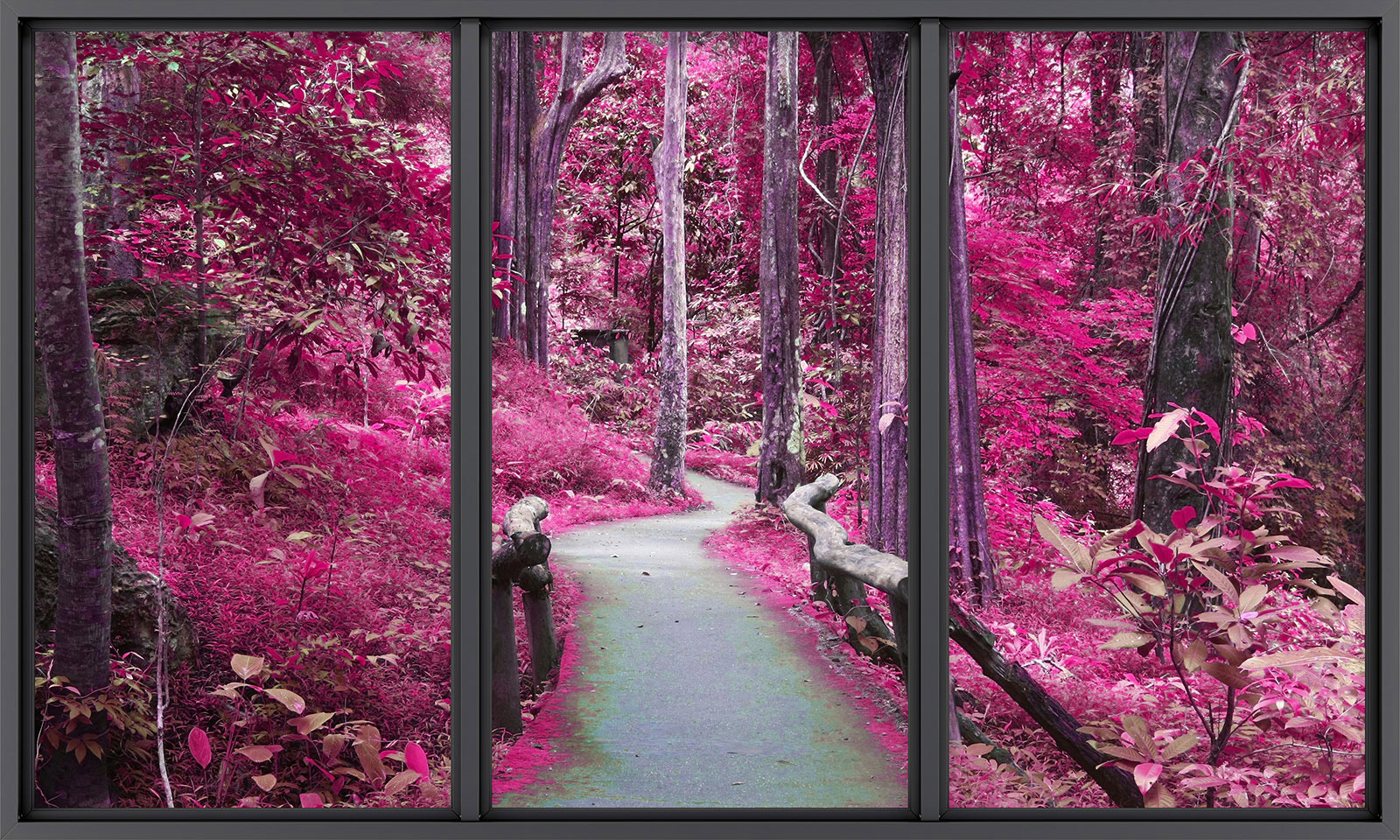 www.lumalea.it > Carte da parati > > > Carta da Parati Effetto 3D > Finestre panoramiche Effetto 3D > Carta da parati panoramica - Illusione ottica - Sentiero foresta