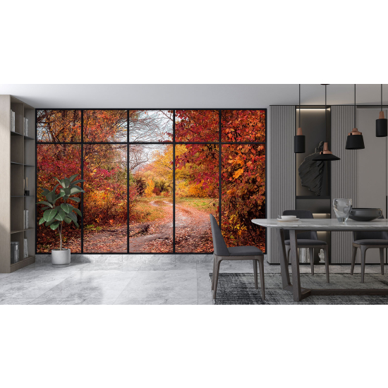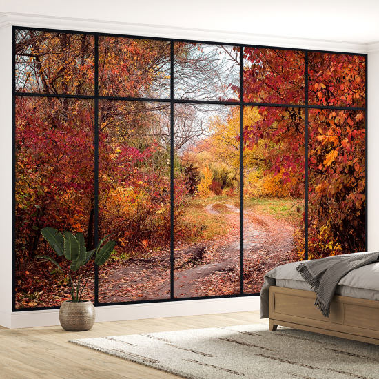 www.lumalea.it > Carte da parati > Carta da Parati Panoramica > Carta da Parati Effetto 3D > Vetrate Effetto 3D > Carta da parati panoramica - Illusione ottica - Sentiero foresta
