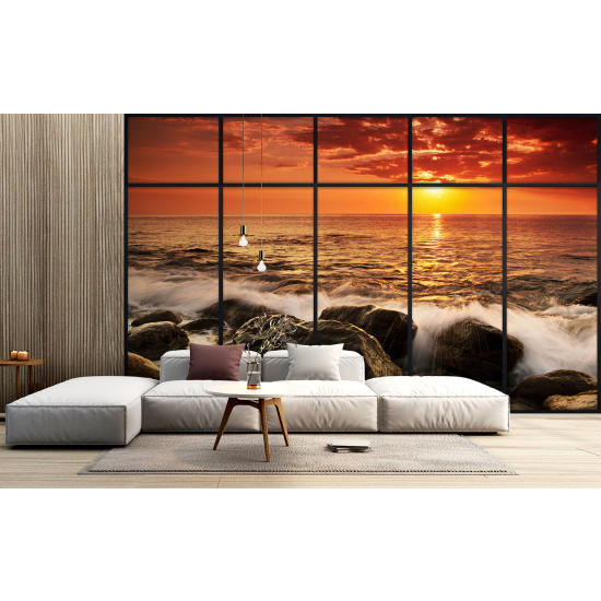www.lumalea.it > Carte da parati > Carta da Parati Panoramica > Carta da Parati Effetto 3D > Vetrate Effetto 3D > Carta da parati panoramica - Illusione ottica - Vista mare