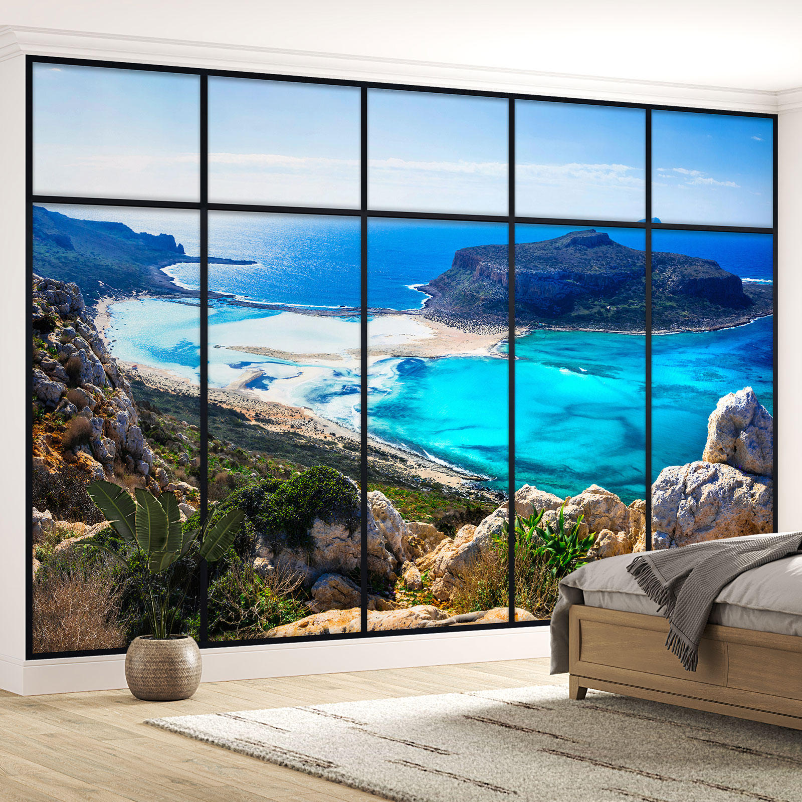 www.lumalea.it > Carte da parati > Carta da Parati Panoramica > Carta da Parati Effetto 3D > Vetrate Effetto 3D > Carta da parati panoramica - Illusione ottica - Vista mare