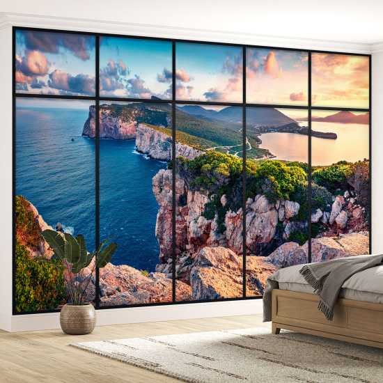 www.lumalea.it > Carte da parati > Carta da Parati Panoramica > Carta da Parati Effetto 3D > Vetrate Effetto 3D > Carta da parati panoramica - Illusione ottica - Vista mare