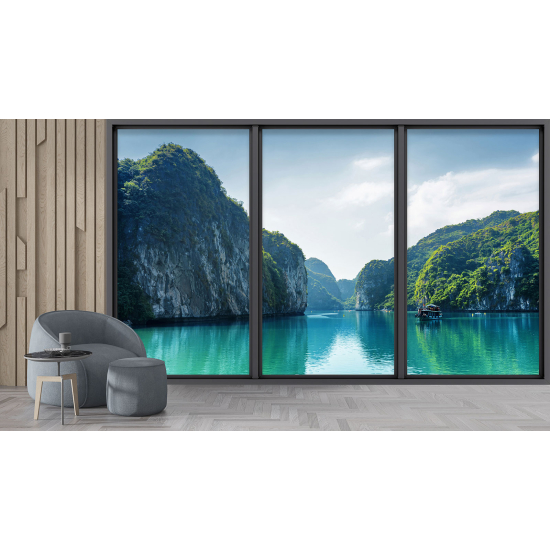 Carta da parati panoramica - Illusione ottica - Vista mare e montagne