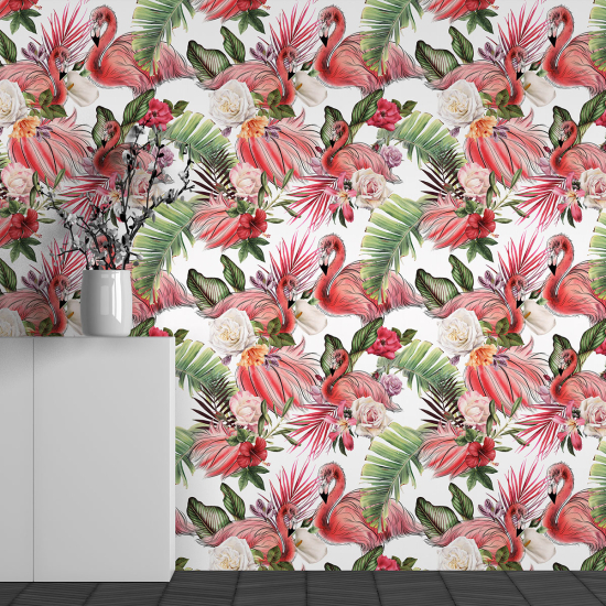 www.lumalea.it > Carte da parati > Carta da Parati Panoramica > Jungle > Carta da parati panoramica - Motivo fenicotteri rosa