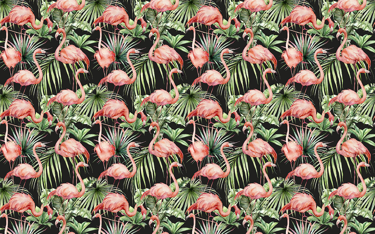 www.lumalea.it > Carte da parati > Carta da Parati Panoramica > Jungle > Carta da parati panoramica - Motivo fenicotteri rosa