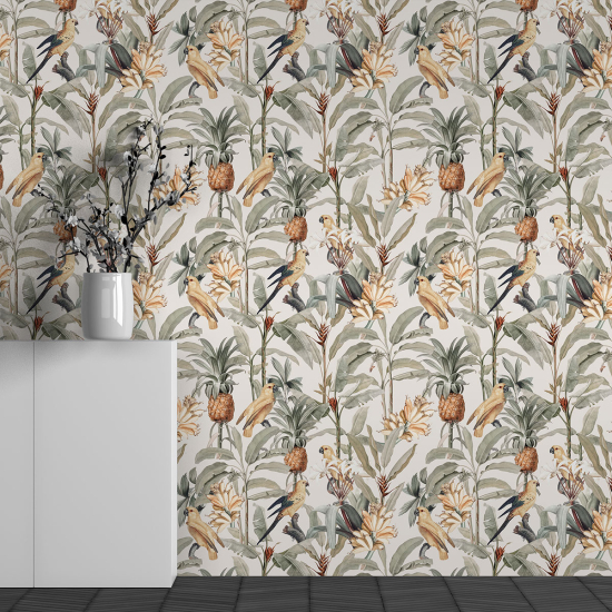 Carta da parati panoramica - Motivo Uccelli Ananas