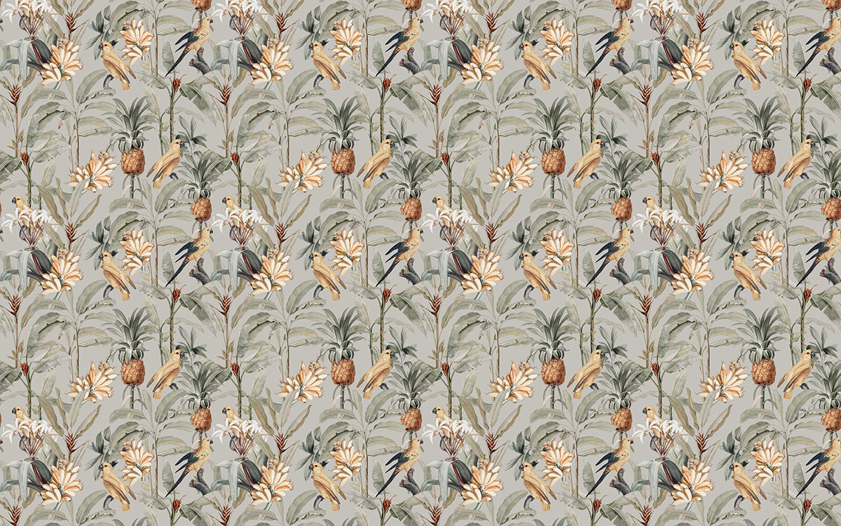 Carta da parati panoramica - Motivo Uccelli Ananas