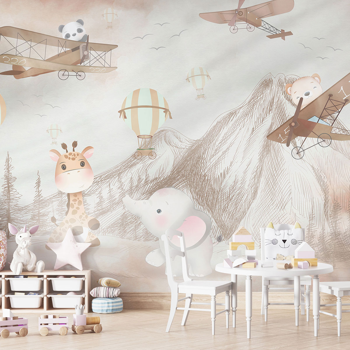 www.lumalea.it > Carte da parati > Carta da Parati Panoramica > Per i Bambini > Carta da Parati Panoramica > Carta da parati panoramica per bambini - Aerei Animali